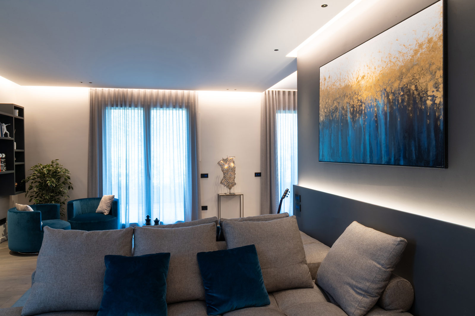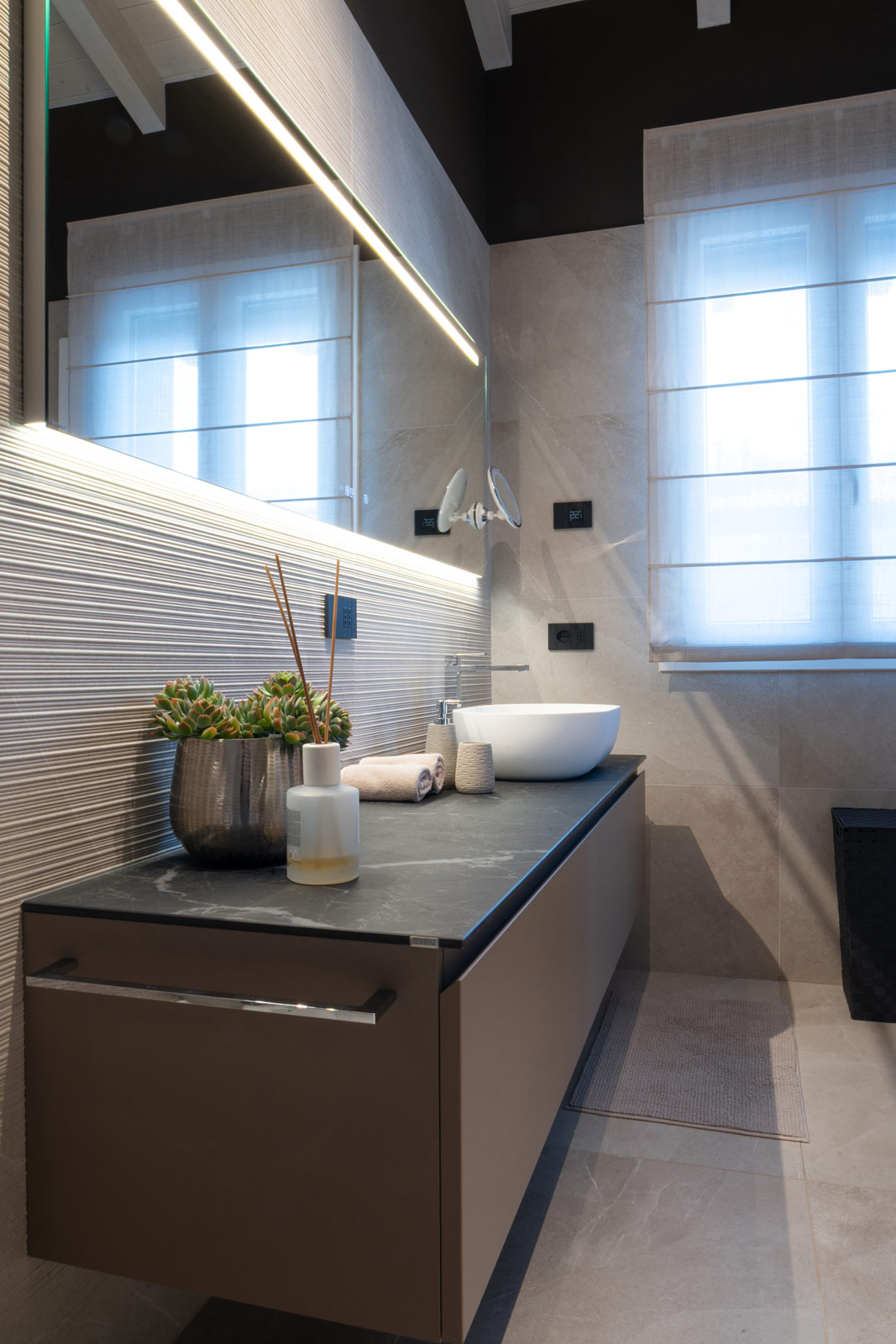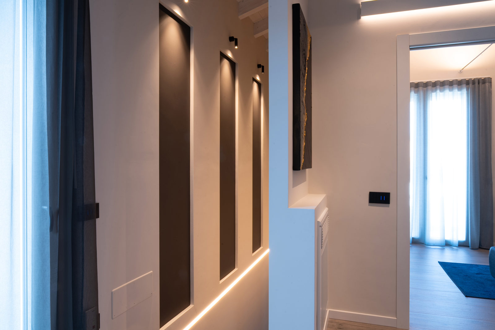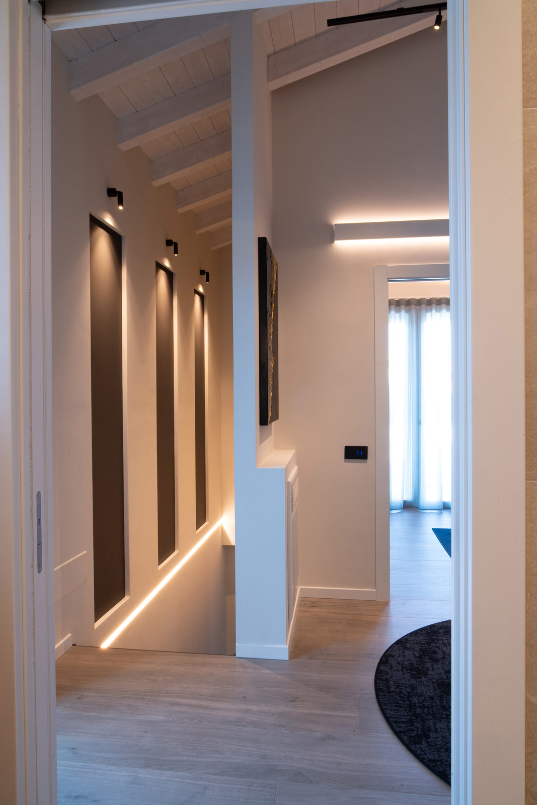 Questo progetto non è solo un esercizio di stile, ma una casa costruita attorno a chi la vive. Un luogo dove ogni scelta – dalla luce al materiale, dal colore al dettaglio – è il risultato di un ascolto attento e di un desiderio preciso: trasformare lo spazio in emozione, e l’abitare in un’esperienza quotidiana di qualità.